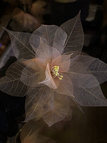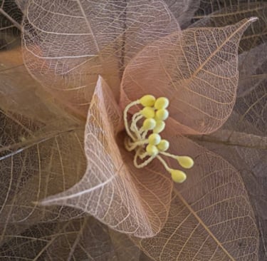 Chaque pièce est façonnée à la main à partir de véritables feuilles, d’éponge végétale, d’étamines et de papier de mûrier de qualité.
